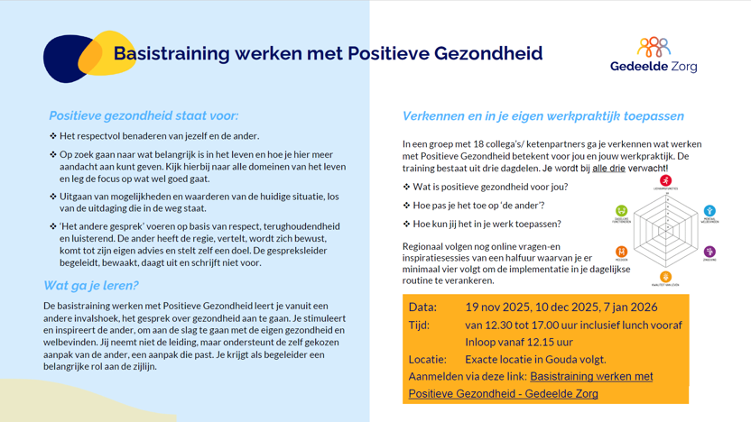 De training is bedoeld voor medewerkers van organisaties die zijn aangesloten bij Gedeelde Zorg.