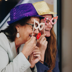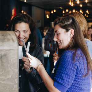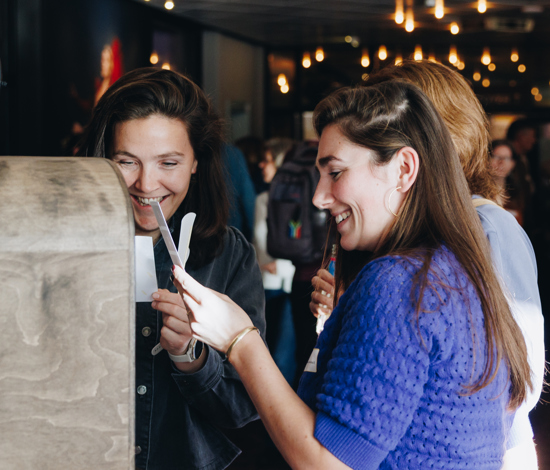 Tijd voor pauze! Daarbij was er gelegenheid voor een drankje en hapje en voor een foto achter de flitskast, waarbij iedereen zijn/haar verandergezicht kon laten vastleggen. En ook om een complimentkaartje aan een collega te schrijven.